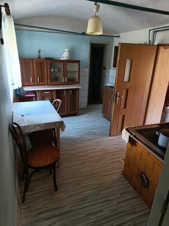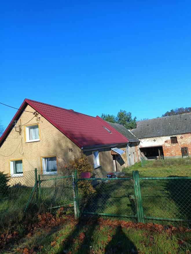 Na sprzedaż dom jednorodzinny do remontu + łąka częściowo zadrzewiona.Dom na parterze składa się z 2 pokoi, kuchni, łazienki oraz dużej sieni. Poddasze użytkowe (2 pokoje).